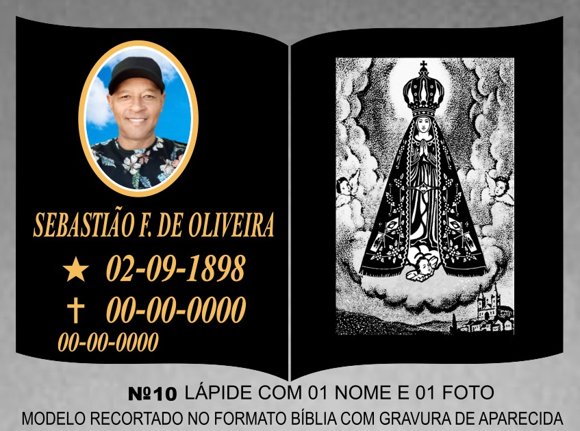 Lápide com 01 nome 01 foto formato de Bíblia com Grav de Aparecida