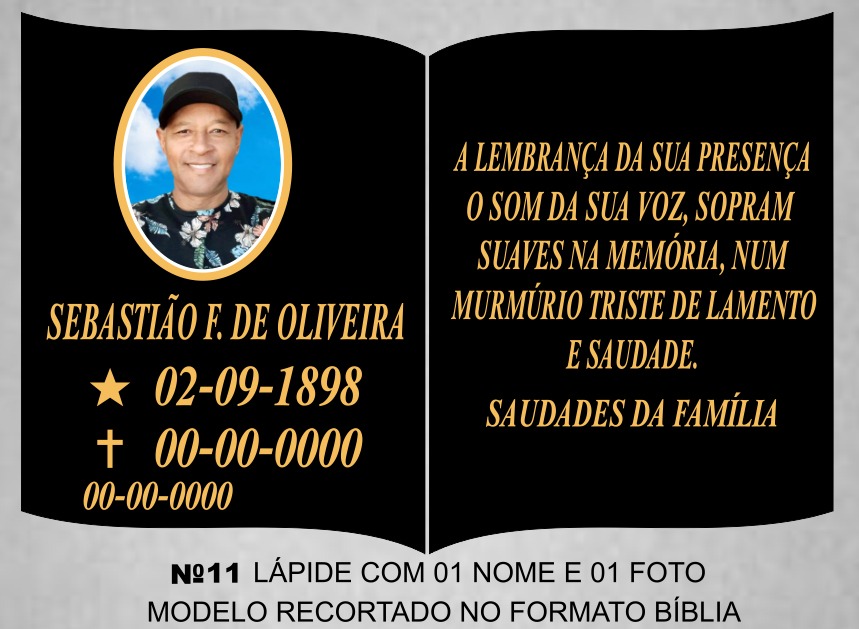 Lápide com 01 nome e 01 foto modelo recortado no formato Bíblia