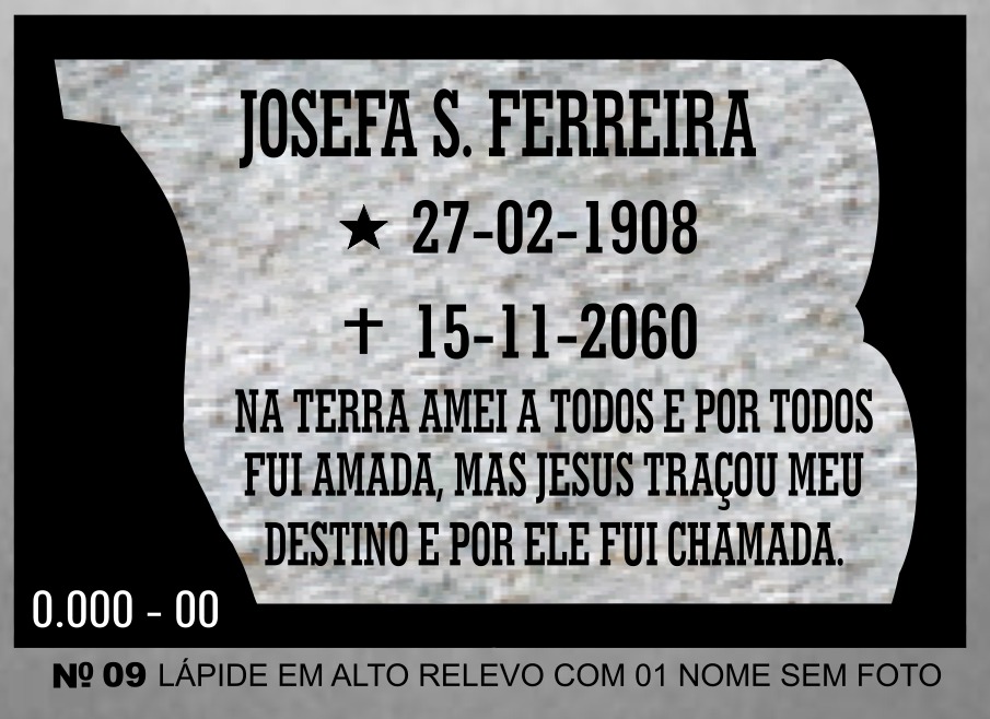 Lápide com 01 nome sem foto em alto relevo