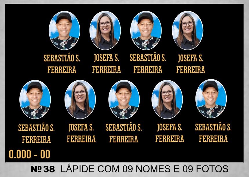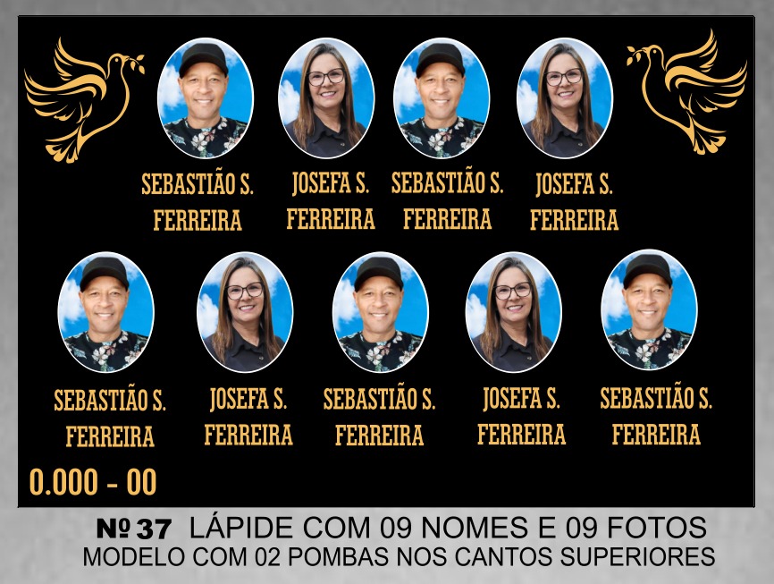 Lápide com 09 nomes e 09 fotos modelo com 02 pombas