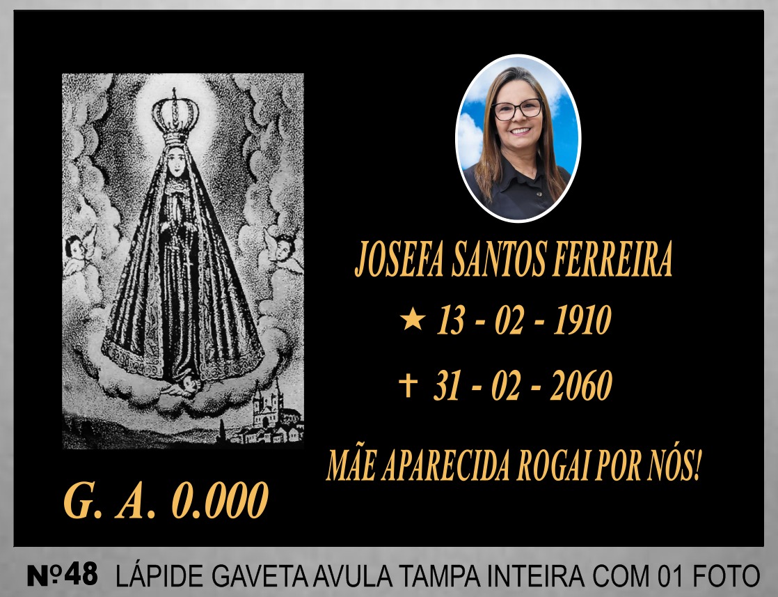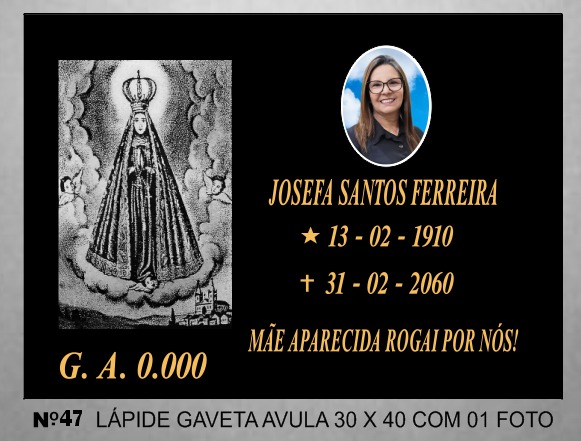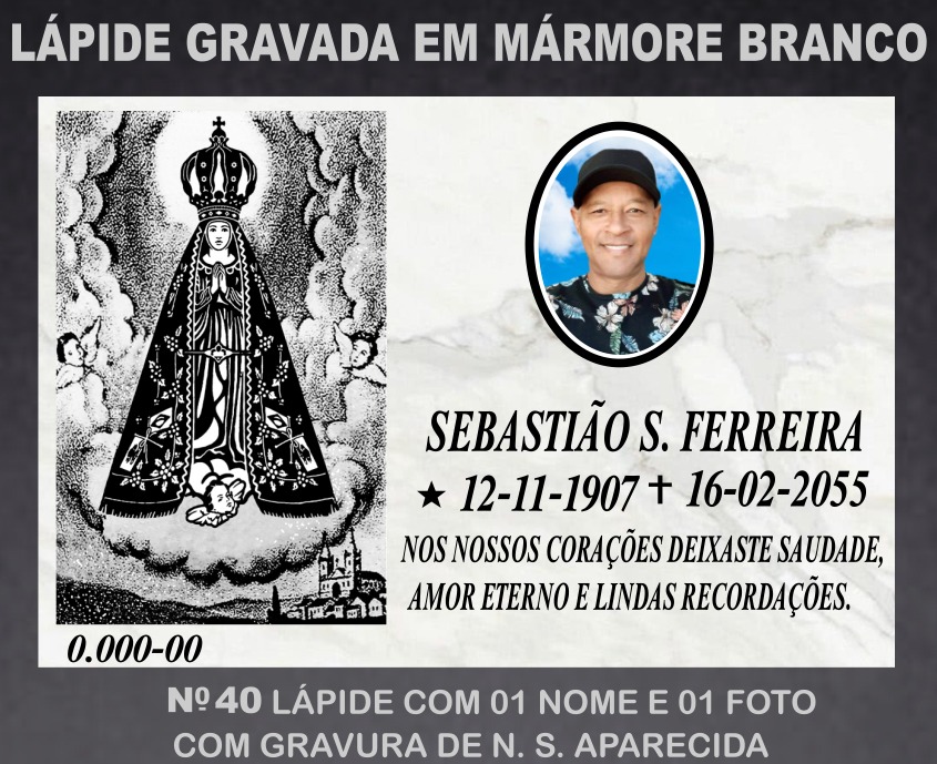 Lápide em Mármore Branco 01 nome e 01 foto Gravura N. S. Aparecida