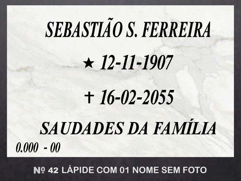 Lápide em mármore com 01 nome sem foto