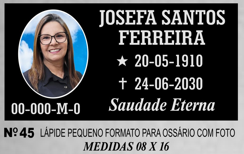 Lápide para Ossário com foto (medidas 08×16)