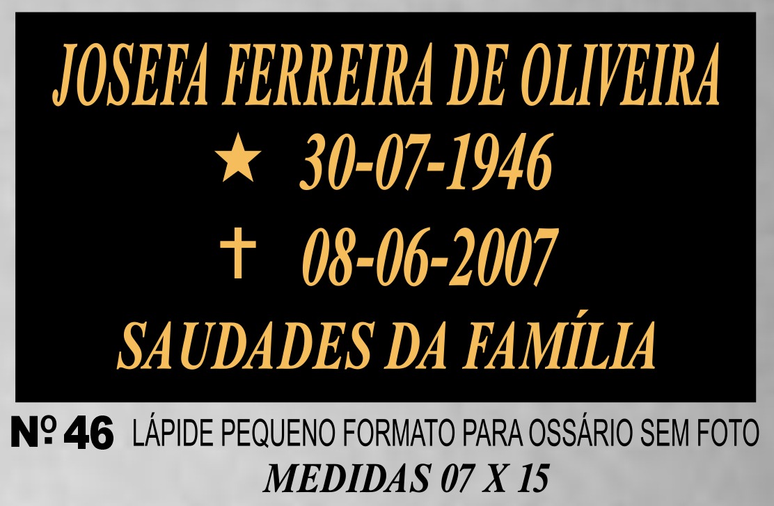 Lápide para Ossário sem foto (medidas 07×15)